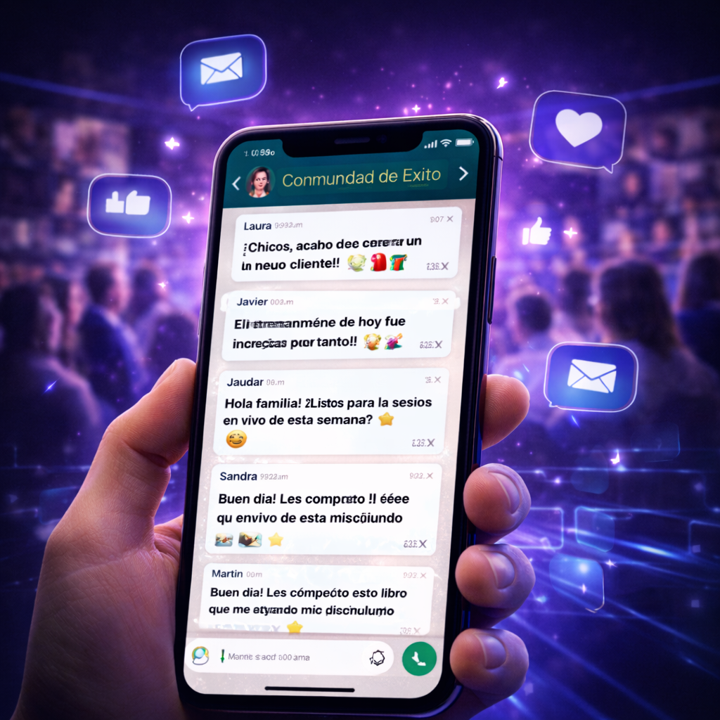 Acceso exclusivo a la Comunidad de WhatsApp para formar parte de un entorno de personas comprometidas con crecer, avanzar y desarrollar su máximo potencial.